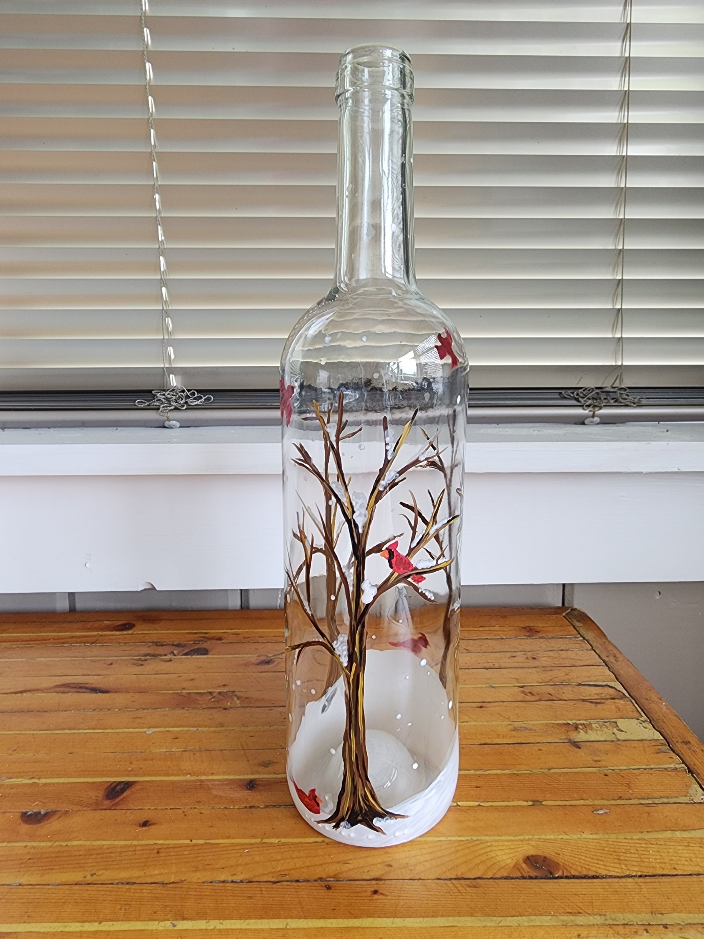 Snowy Cardinals Upcucled Wine Bottle Paint Event